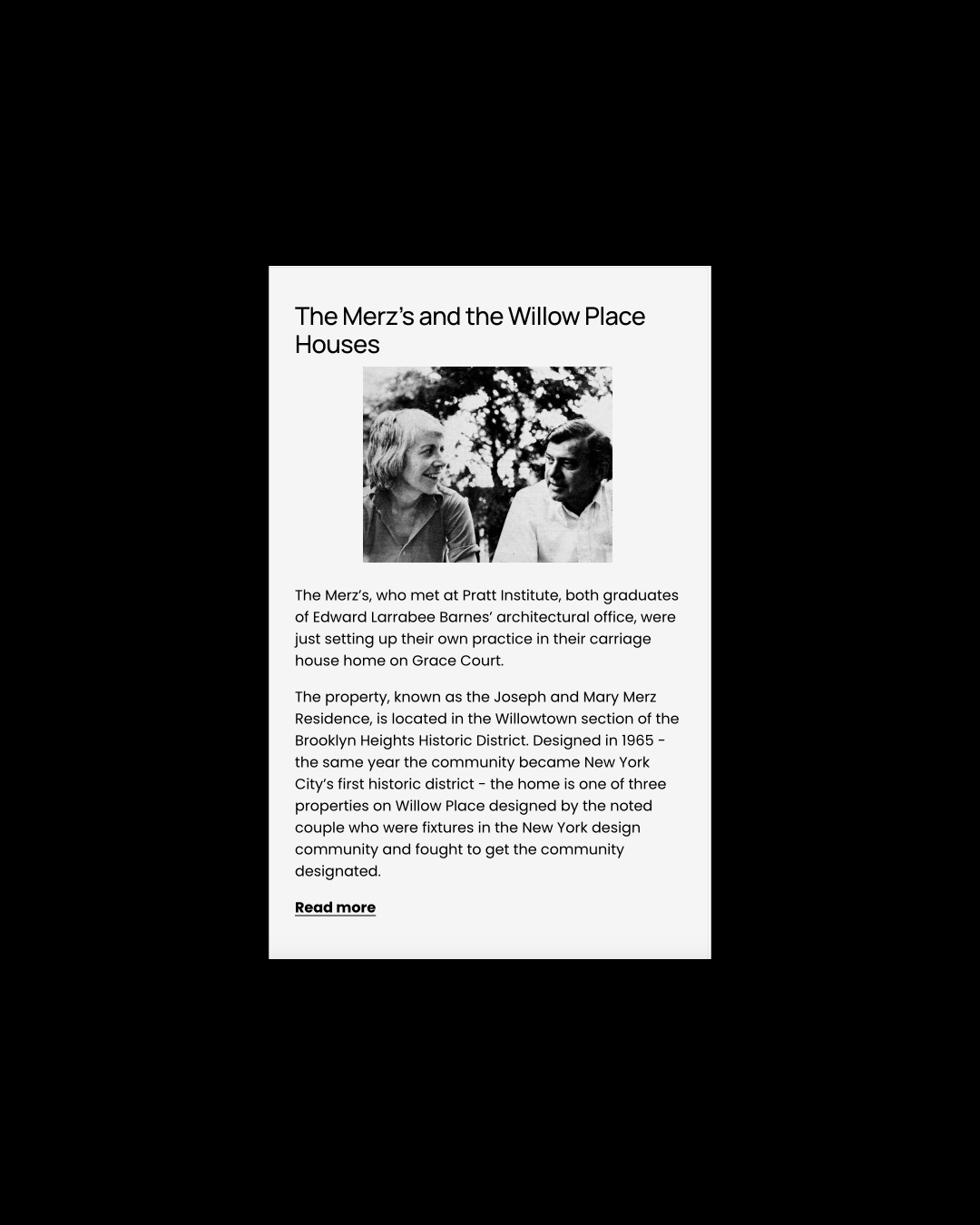 Website design / Social mediaThe property, known as the Joseph and Mary Merz Residence, is located in the Willowtown section of the Brooklyn Heights Historic District. Designed in 1965, the same year the community became New York City’s first historic district, the home is one of three properties on Willow Place designed by the noted couple, who were fixtures in the New York design community and fought to get the community designated.